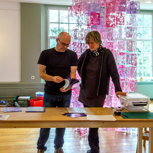 Aan de grotere papierinstallaties gaat een onderzoeksperiode vooraf. Individueel onderzoeken we een thema en geven de studies aan elkaar door. We vertellen wat we van elkaar nodig hebben en verwachten. Langzamerhand ontstaan verschillende concepten waarvan we er uiteindelijk 1 kiezen om uit te werken. Vaak neemt de uitvoering veel tijd en planning omdat we ook in onze samenwerking secuur en gedetailleerd werken.”