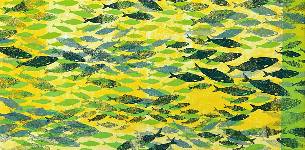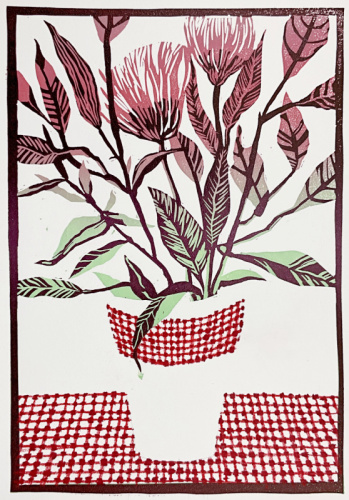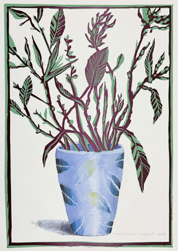 In 1991 studeerde ik af aan de Academie voor Beeldende Vorming in Tilburg. In de laatste jaren van mijn studie was ik vooral in het grafieklokaal te vinden. Experimenteren met etsen, zeefdruk op papier en stof. Maar vooral de hoogdruktechnieken hadden mijn interesse: gutsen en zagen in linoleum en triplex. En enkele lagen gedrukt of in de meerkleurige reductietechniek.