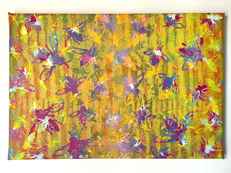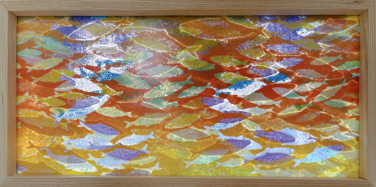 Jaren later pakte ik de druktechniek weer op. Eerst als middel om kunststof te bedrukken en om gesneden papier kleur en structuur te geven. Daarna om voorstellingen en patronen te drukken op papier. Inmiddels is het idioom uitgebreid door prints te combineren met ruimtelijke papierstructuren en te drukken op plexiglas.